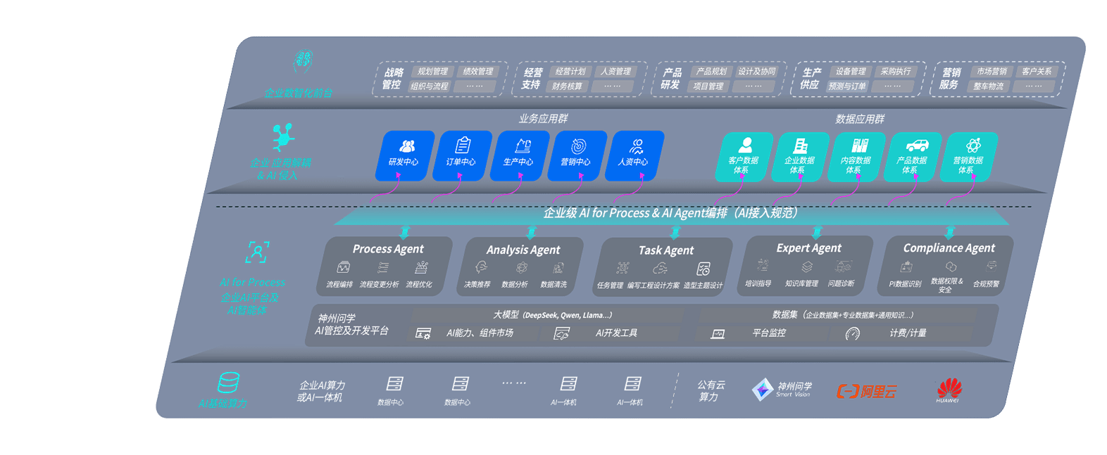端到端的一站式AI工作空间深度融合了从企业战略规划到日常经营的全流程业务板块,,,定向解决车企内部领域多、、、部门多、、、、链条长、、、、场景碎片化等难题,,,,支持车企快速构建以AI为核心的生产力写作体系,,,,实现任务执行与AI能力的无缝集成与交互