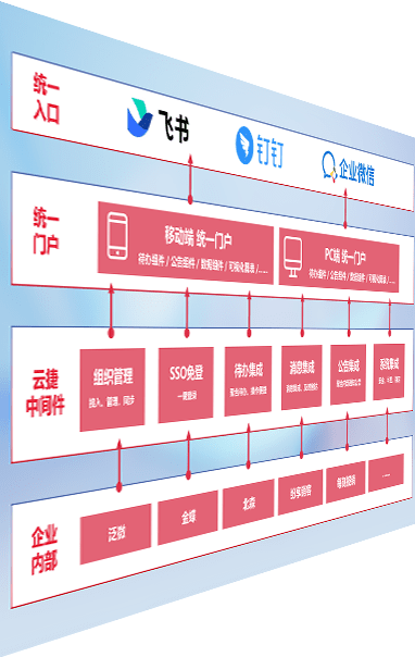 对协作平台提供支持服务,,,支持企业应用与协作平台对接,,,包含组织同步、、、消息集成、、待办集成等。。支持目前主流的协作平台:钉钉、、、、企微和飞书。。
